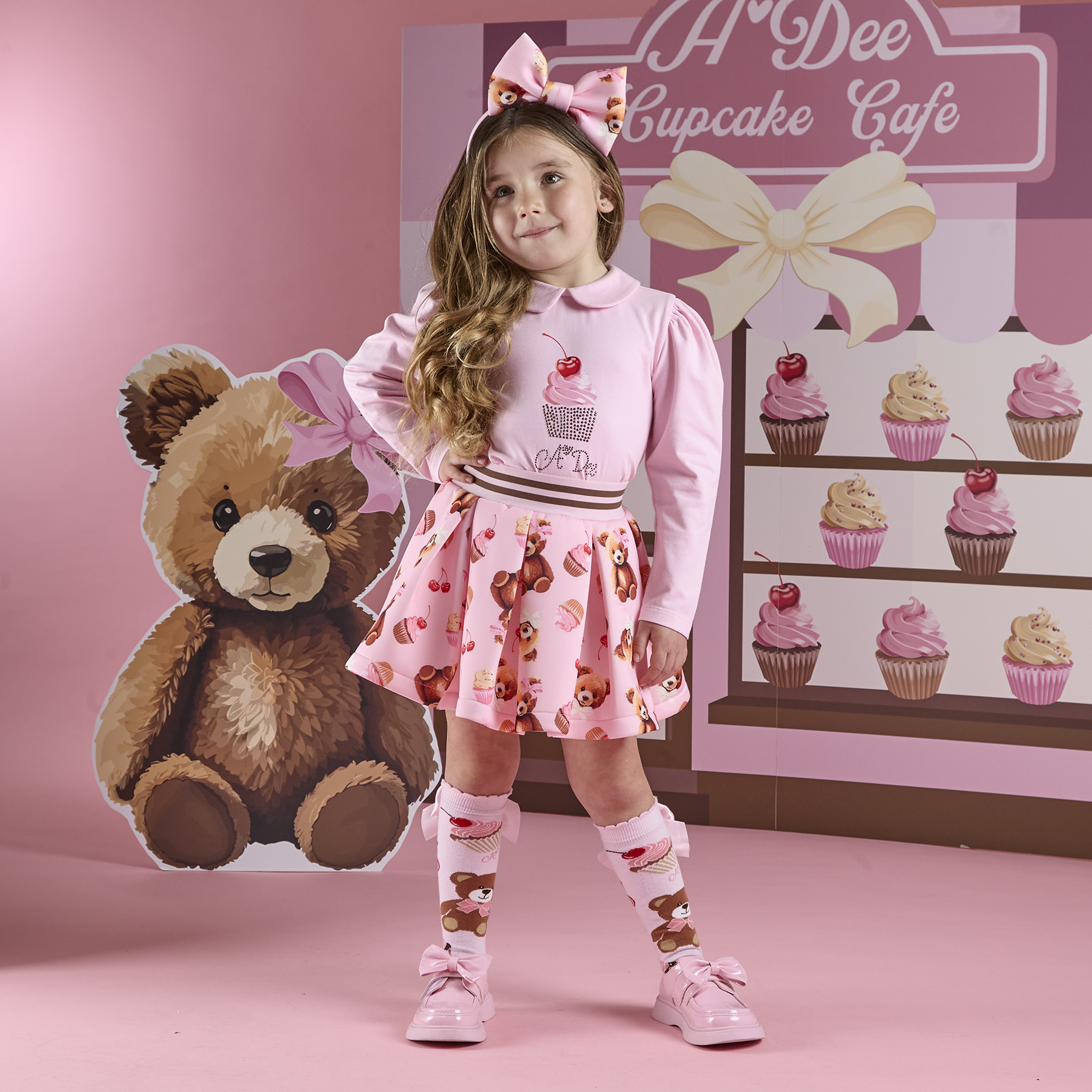 | The Mabel skirt set comes with a box pleat pink teddy bear bakery printed skirt with an elasticated waistband for a comfortable fit. Paired with a puff sleeve top with a pretty artwork, sweet collar and back neck fastening. This set is just too sweet! |