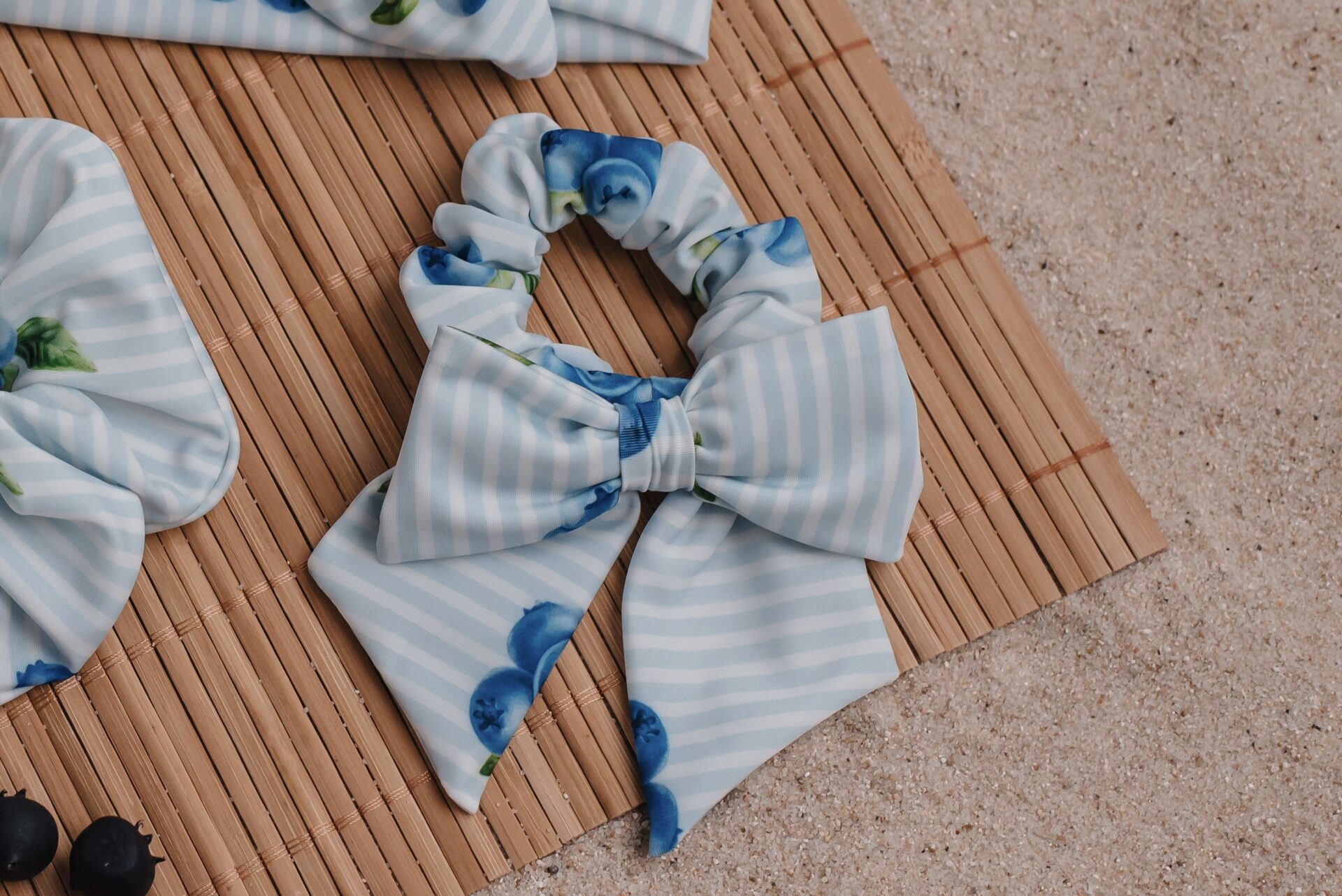 Matching hair accessories for blueberries swim collection scrunchie with bow